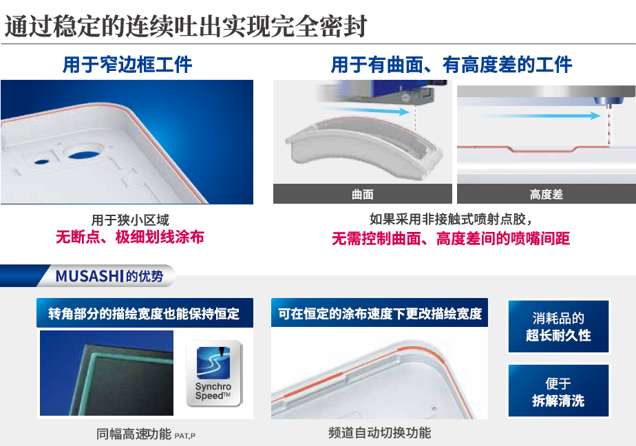 よりきめ細かく、より高速従來技術に比べて線幅約1/2、塗布速度約2倍!3 Dフレームゴム塗布