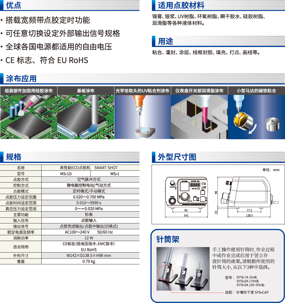The dispensing accuracy is 130% of that of previous products. The dispensing condition setting function is ultra lightweight and compact